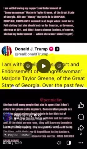 I am withdrawing my support and Endorsement of “Congresswoman” Marjorie Taylor Greene, of the ...