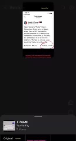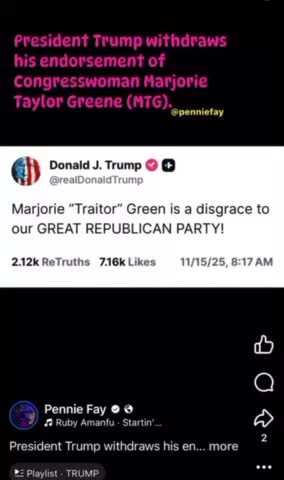 IRL, Trump put this out on Truth. Wacky Marjorie “Traitor” Brown (Remember, Green turns to Brown...
