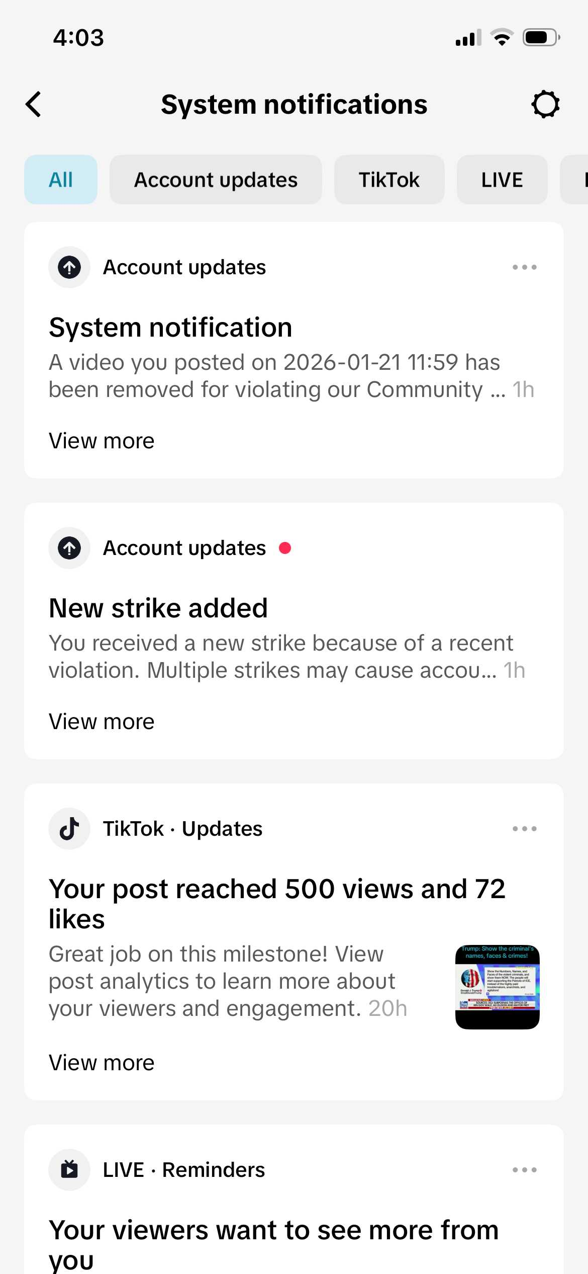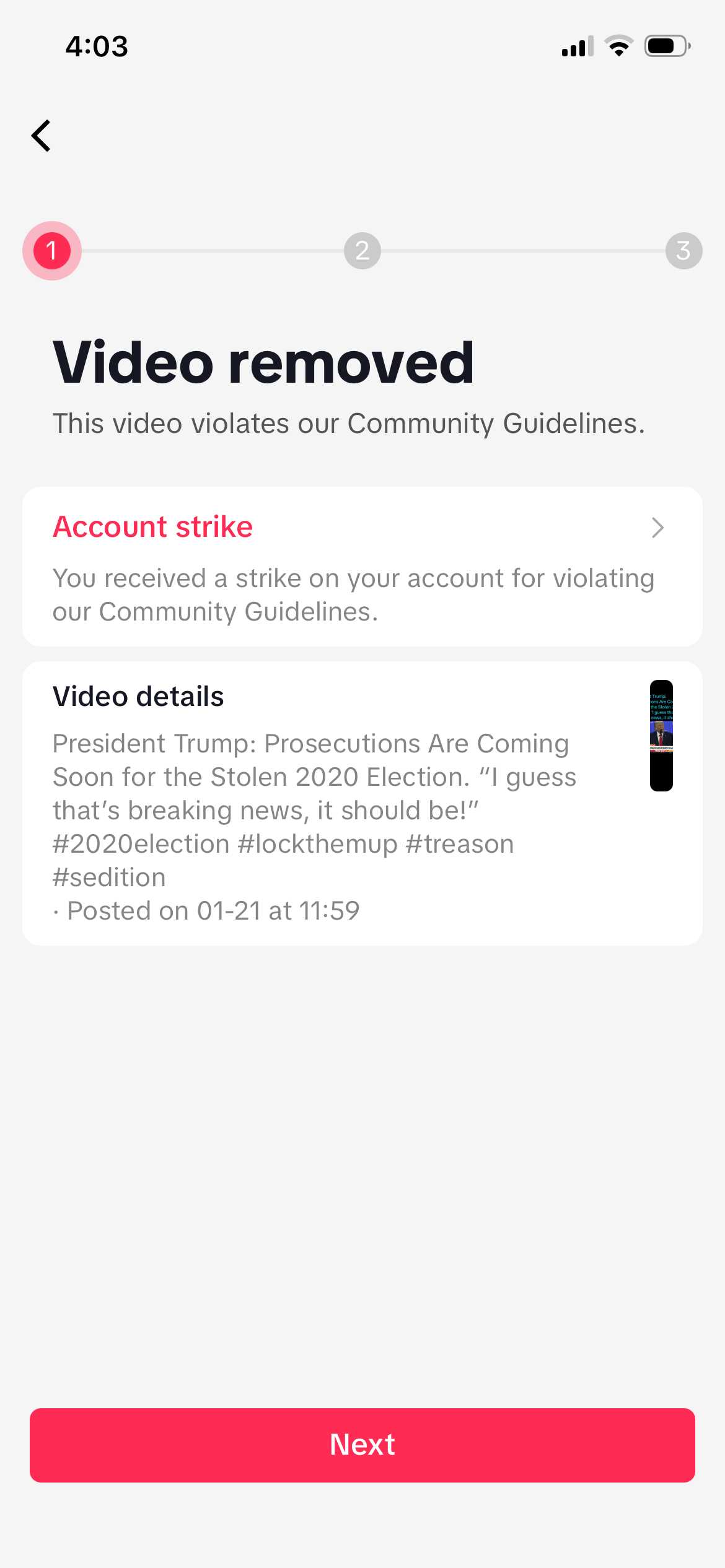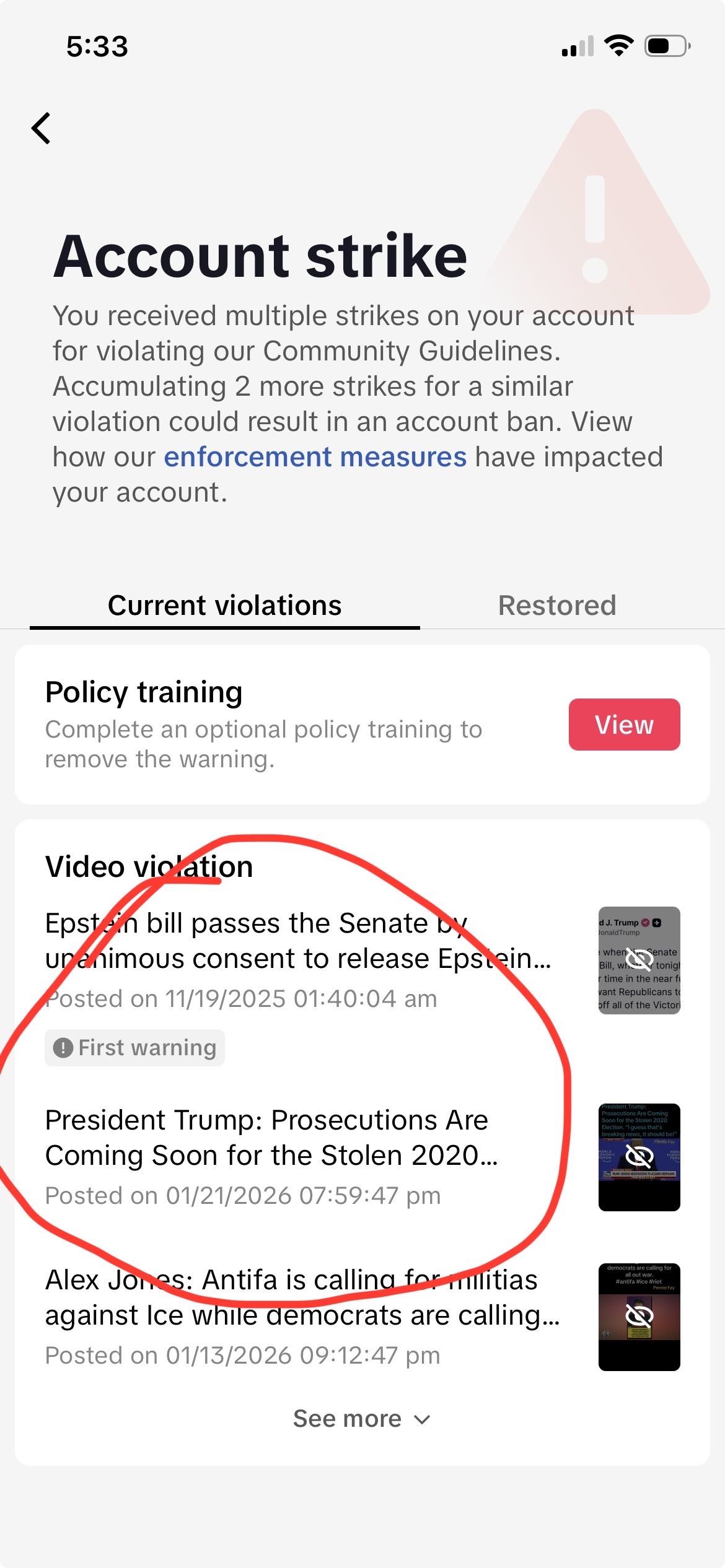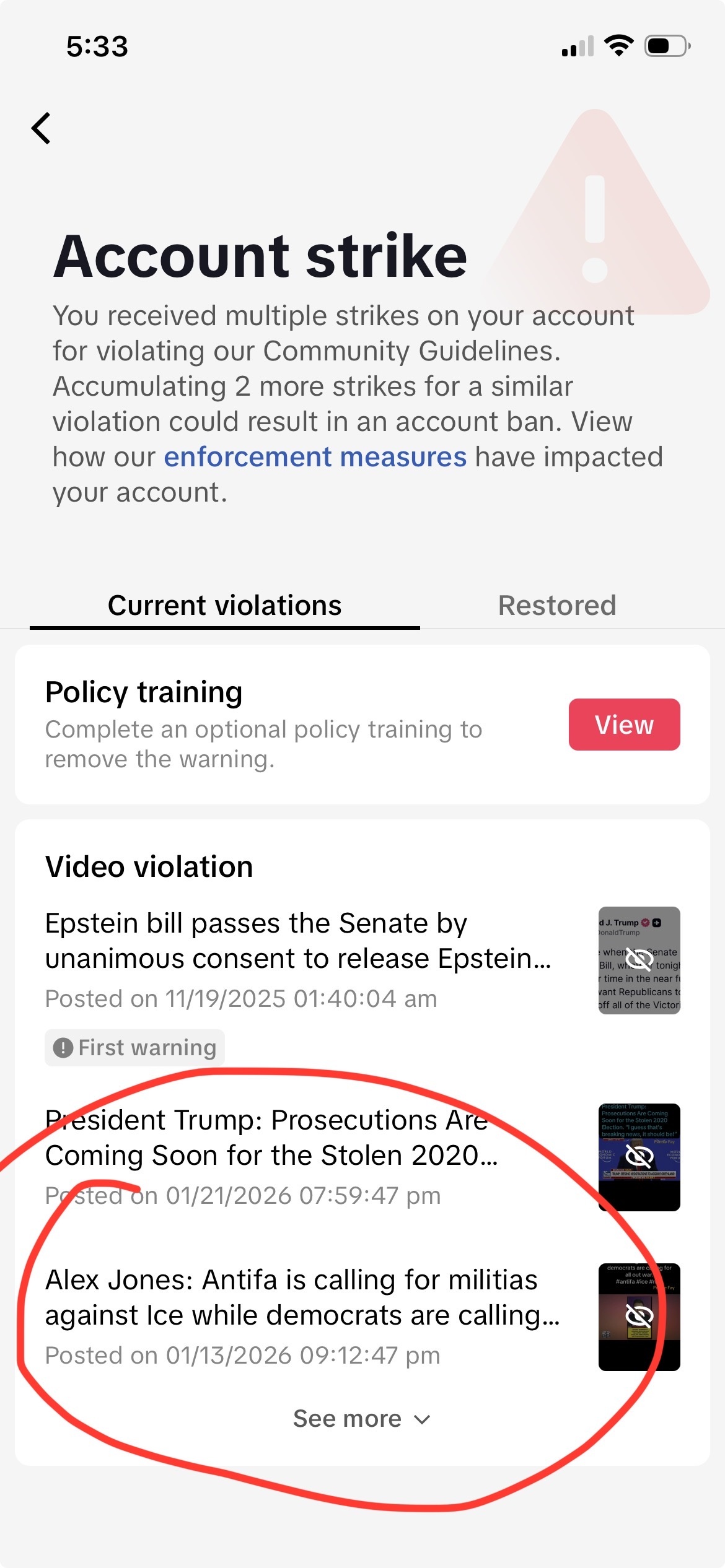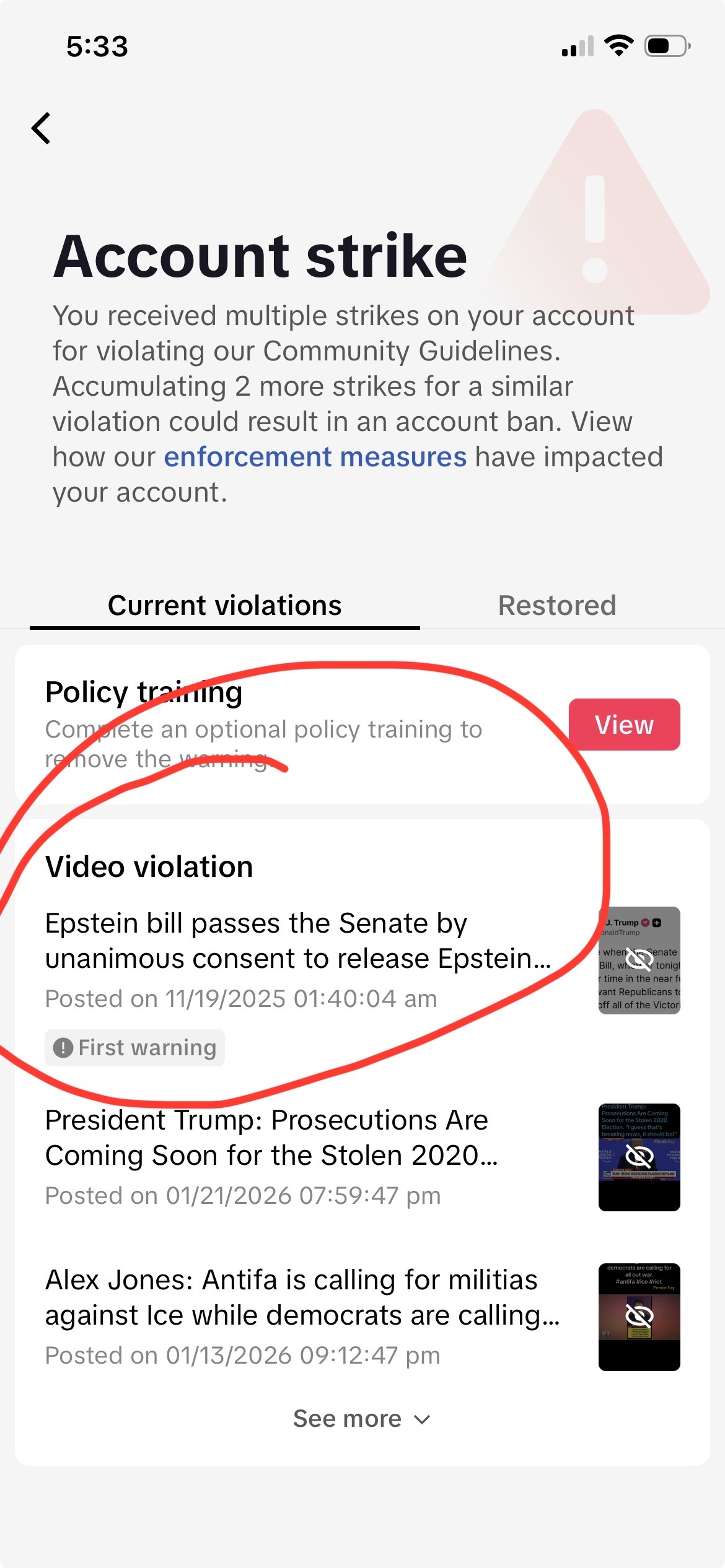 Who owns @ticktock now? Check out my 3 violations: Senate passes Epstein bill, Alex Jones Antifa calling for militia & President Trump’s Election 2020 Davos speech today. @realDonaldTrump @RealAlexJones @SenateGOP