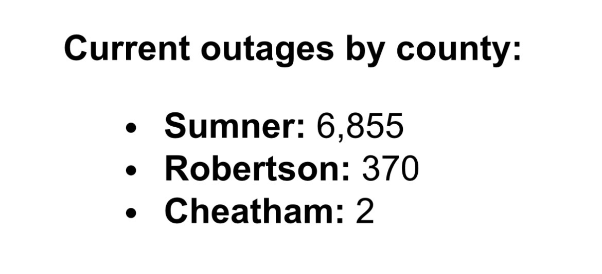 Nashville Electric outage update: for counties by the Davidson line.